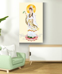 Tranh ép gỗ laminate phủ mica cao cấp Quan Thế Âm Bồ Tát thường đứng trên hoa sen – biểu tượng của sự tinh khiết và sự giải thoát. Bên cạnh đó, hình ảnh Quan Thế Âm Bồ Tát còn thường được tạo hình với những đường cong mềm mại và nụ cười tươi, tạo nên một không gian bình an và yên tĩnh. Tranh thường mang trong mình thông điệp về tình yêu và sự từ bi vô tận của Bồ Tát, và được coi như một biểu tượng của niềm tin và hy vọng trong cuộc sống.