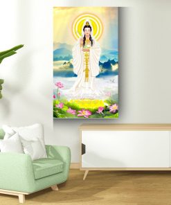 Tranh ép gỗ laminate phủ mica cao cấp Quan Thế Âm Bồ Tát thường đứng trên hoa sen – biểu tượng của sự tinh khiết và sự giải thoát. Bên cạnh đó, hình ảnh Quan Thế Âm Bồ Tát còn thường được tạo hình với những đường cong mềm mại và nụ cười tươi, tạo nên một không gian bình an và yên tĩnh. Tranh thường mang trong mình thông điệp về tình yêu và sự từ bi vô tận của Bồ Tát, và được coi như một biểu tượng của niềm tin và hy vọng trong cuộc sống.
